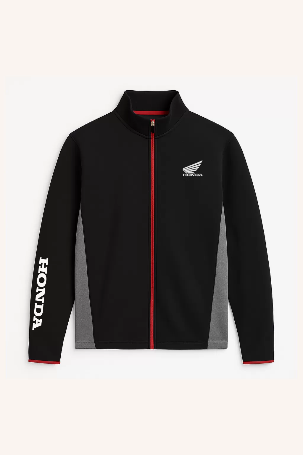 The iconic Honda Wing logo on the chest and bold Honda lettering on the sleeve complete a piece that blends performance spirit.