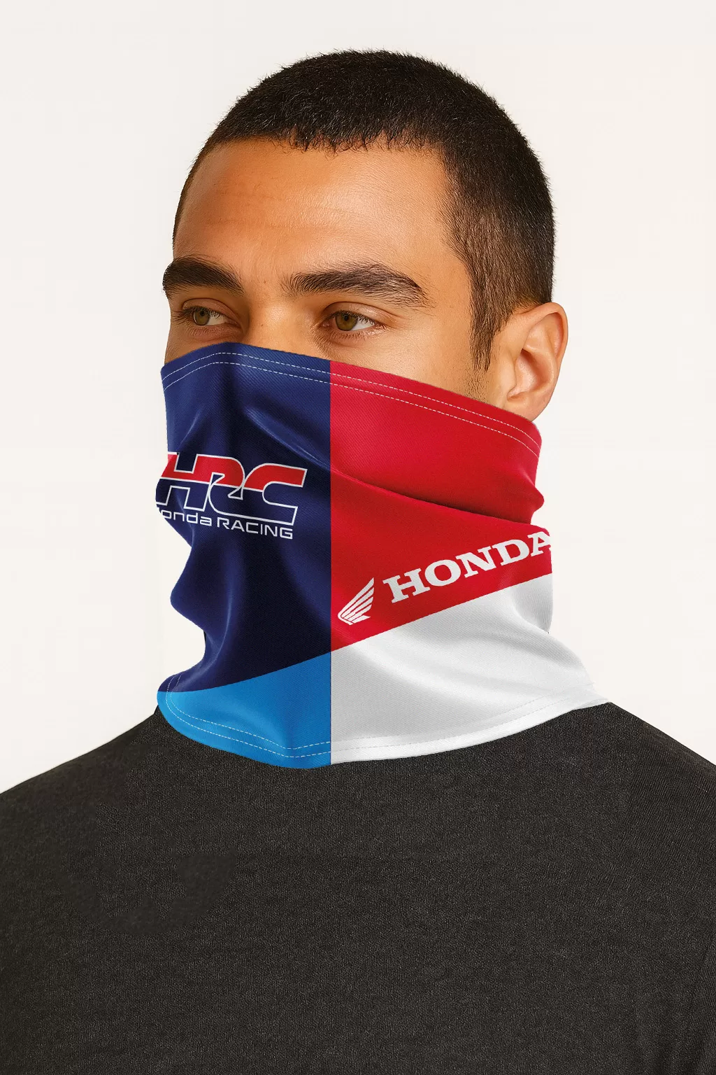 A versatile neck tube in bold HRC racing colors, featuring the Honda Wing and HRC logos.